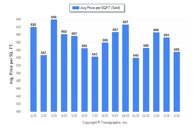 March 2026 Average Sold Price per Square Footage was Neutral**