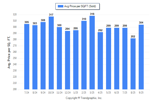 Curnt vs. Same Month 1 Yr Ago: Avg. Sq. Ft. Price (Sold)