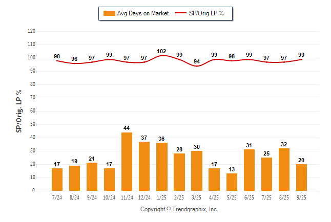September 2025 Average Days on Market trend Remains Steady and Sold/Original List Price Ratio Remains Steady**