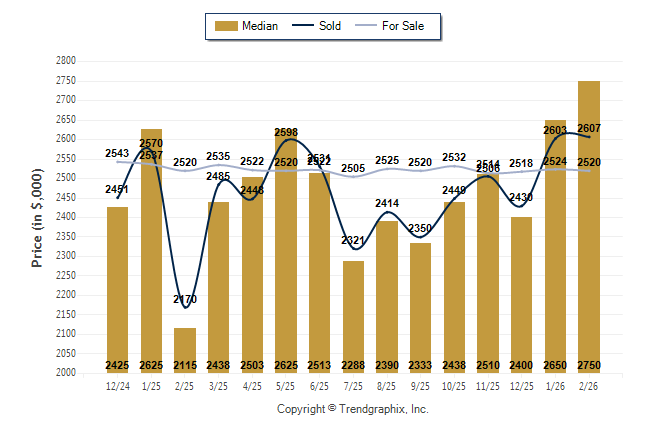February 2026 Median Price was Appreciating, Avg. For Sale Price was Neutral, and Avg. Sold Price was Appreciating**