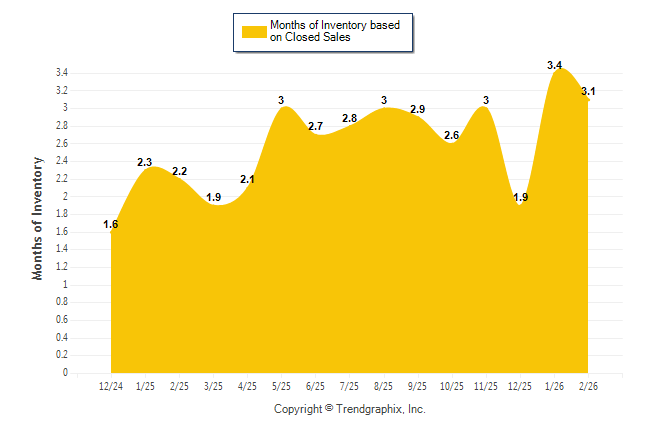 Curnt vs. Same Month 1 Yr Ago: Months of Inventory (Closed Sales)