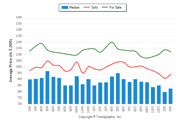 February 2026 Median Price was Neutral, Avg. For Sale Price was Neutral, and Avg. Sold Price was Neutral**