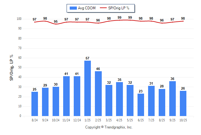 October 2025 Average Continuous Days on Market trend Remains Steady and Sold/Original List Price Ratio Remains Steady**