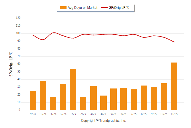 November 2025 Average Days on Market trend was Rising and Sold/Original List Price Ratio was Falling**