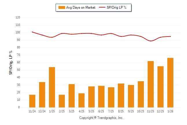 January 2026 Average Days on Market trend was Rising and Sold/Original List Price Ratio Remains Steady**