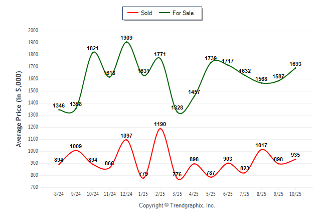 October 2025 Average For Sale Price was Neutral and Average Sold Price was Neutral**