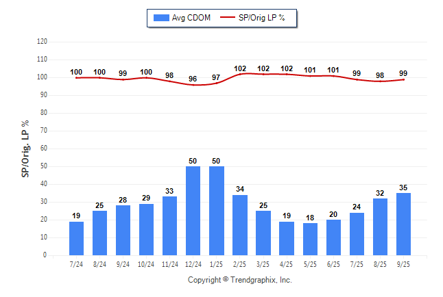 September 2025 Average Continuous Days on Market trend was Rising and Sold/Original List Price Ratio Remains Steady**