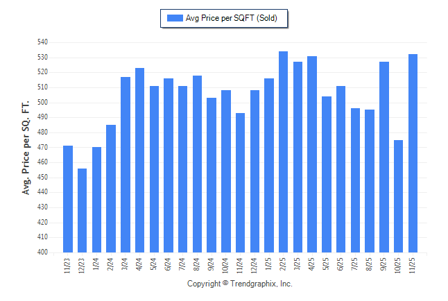 November 2025 Average Sold Price per Square Footage was Appreciating**