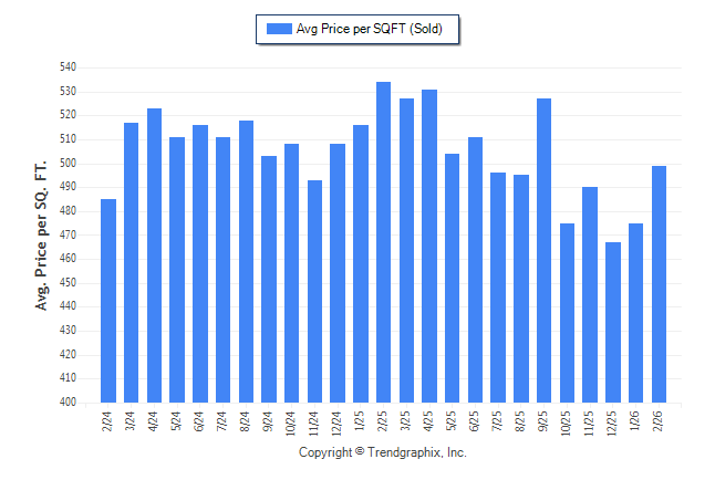 February 2026 Average Sold Price per Square Footage was Neutral**