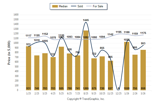 March 2026 Median Price was Neutral, Avg. For Sale Price was Neutral, and Avg. Sold Price was Neutral**
