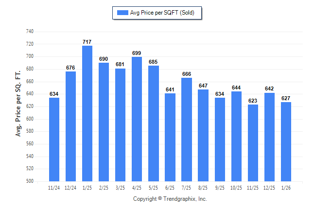 January 2026 Average Sold Price per Square Footage was Neutral**