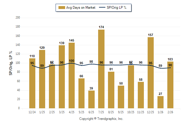 February 2026 Average Days on Market trend Remains Steady and Sold/Original List Price Ratio Remains Steady**