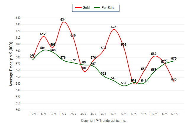December 2025 Average For Sale Price was Appreciating and Average Sold Price was Depreciating**