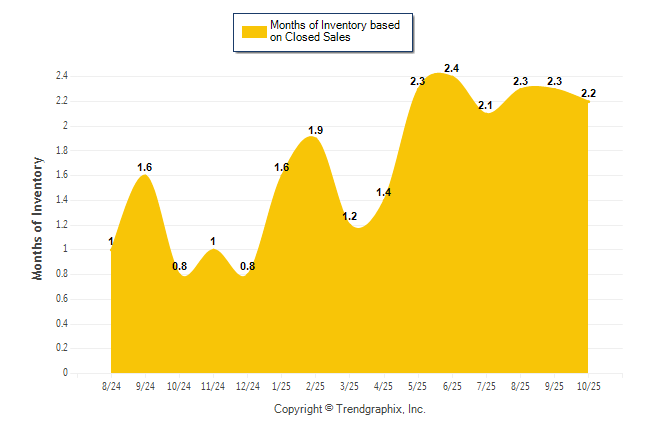 Curnt vs. Same Month 1 Yr Ago: Months of Inventory (Closed Sales)