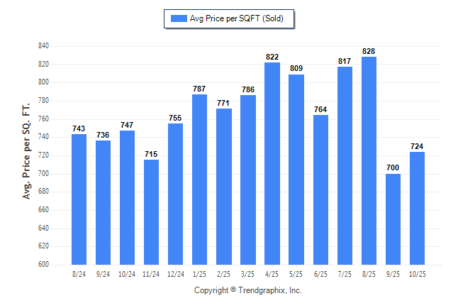 October 2025 Average Sold Price per Square Footage was Neutral**