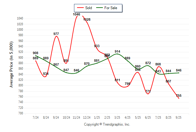 September 2025 Average For Sale Price was Neutral and Average Sold Price was Depreciating**