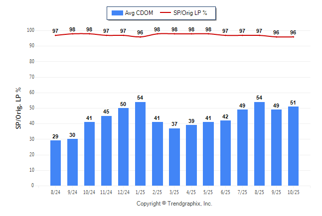 October 2025 Average Continuous Days on Market trend Remains Steady and Sold/Original List Price Ratio was Falling**