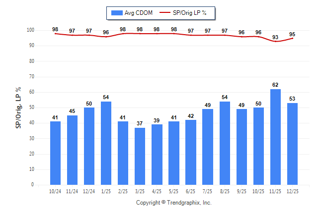 December 2025 Average Continuous Days on Market trend Remains Steady and Sold/Original List Price Ratio Remains Steady**