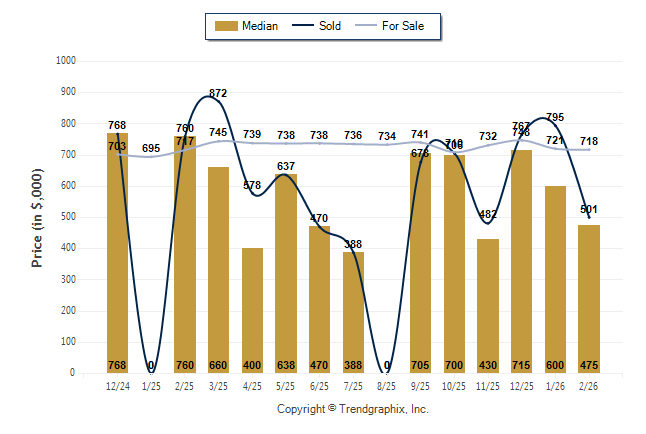 February 2026 Median Price was Depreciating, Avg. For Sale Price was Neutral, and Avg. Sold Price was Neutral**