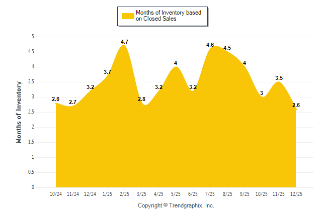 Curnt vs. Same Month 1 Yr Ago: Months of Inventory (Closed Sales)