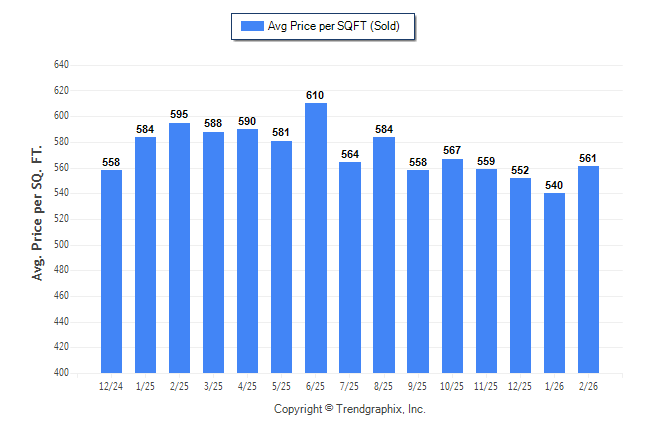 February 2026 Average Sold Price per Square Footage was Neutral**