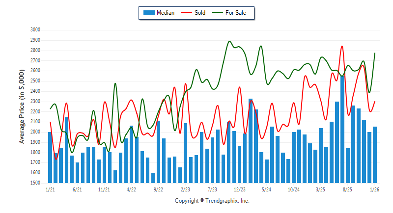 January 2026 Median Price was Neutral, Avg. For Sale Price was Appreciating, and Avg. Sold Price was Neutral**