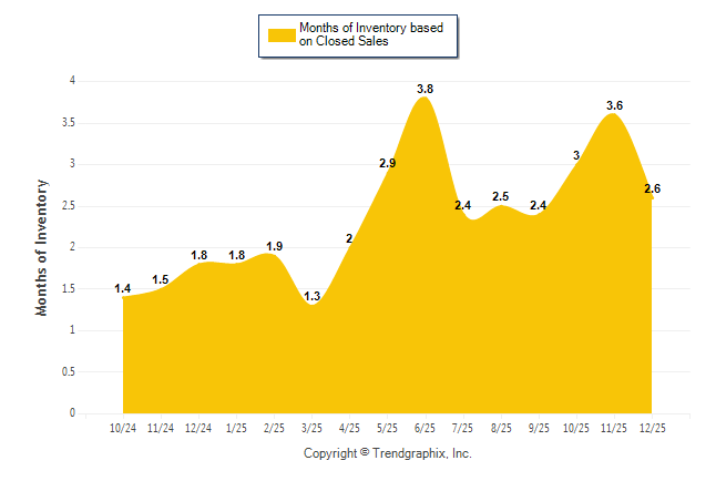 Curnt vs. Same Month 1 Yr Ago: Months of Inventory (Closed Sales)
