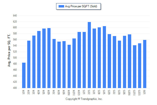 January 2026 Average Sold Price per Square Footage was Neutral**
