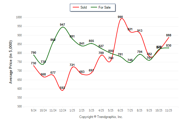 November 2025 Average For Sale Price was Appreciating and Average Sold Price was Neutral**