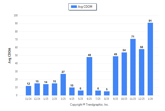 January 2026 Average Continuous Days on Market trend was Rising**