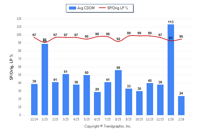February 2026 Average Continuous Days on Market trend Remains Steady and Sold/Original List Price Ratio Remains Steady**