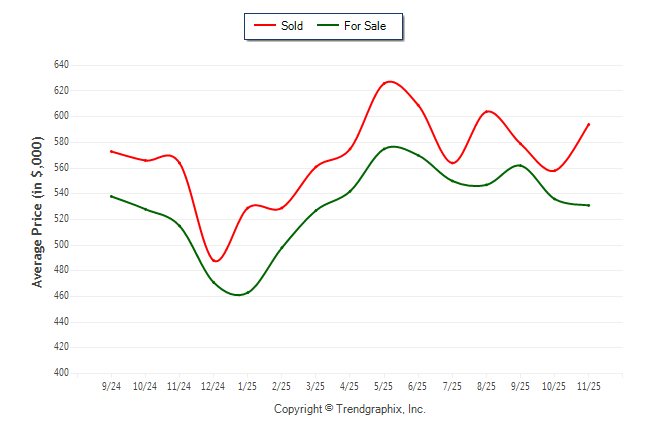 November 2025 Average For Sale Price was Depreciating and Average Sold Price was Neutral**