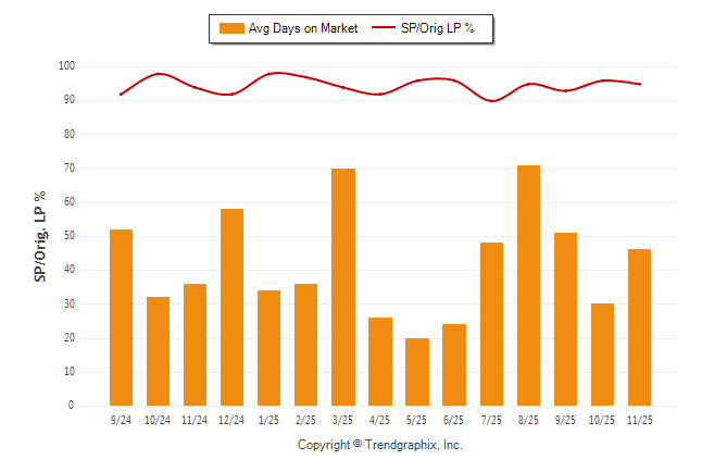 November 2025 Average Days on Market trend Remains Steady and Sold/Original List Price Ratio Remains Steady**