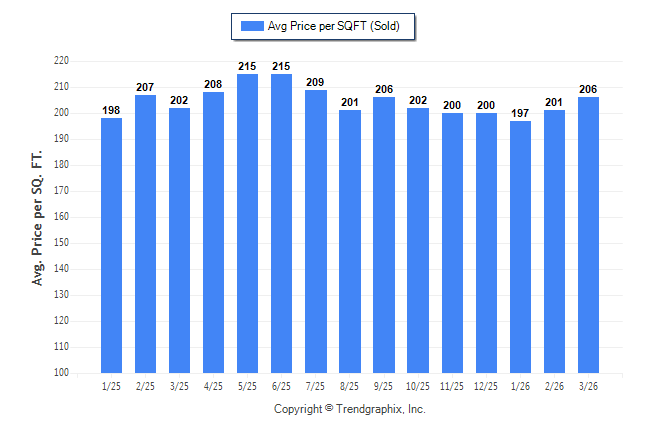 March 2026 Average Sold Price per Square Footage was Appreciating**