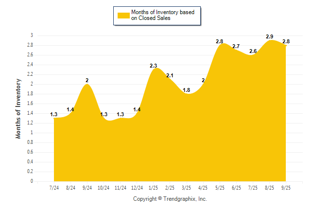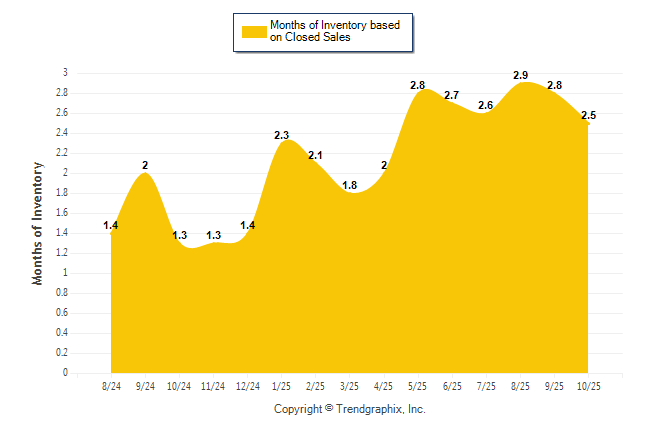 Curnt vs. Same Month 1 Yr Ago: Months of Inventory (Closed Sales)