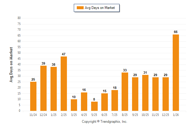 January 2026 Average Days on Market trend was Rising**