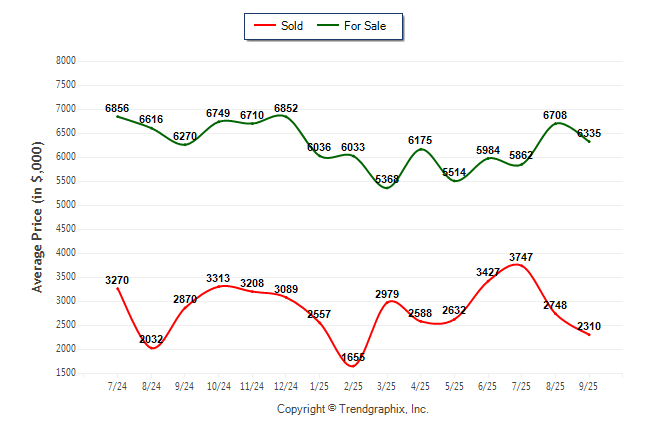 September 2025 Average For Sale Price was Neutral and Average Sold Price was Neutral**
