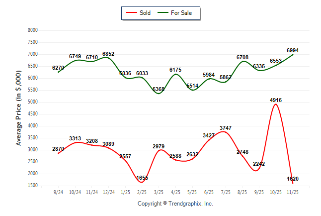 November 2025 Average For Sale Price was Appreciating and Average Sold Price was Depreciating**