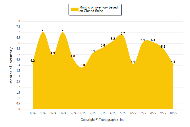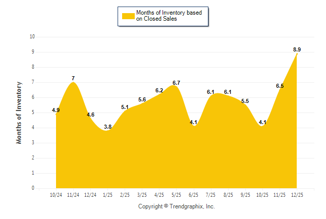 Curnt vs. Same Month 1 Yr Ago: Months of Inventory (Closed Sales)