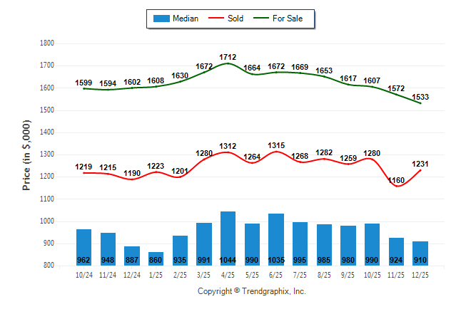 December 2025 Median Price was Depreciating, Avg. For Sale Price was Depreciating, and Avg. Sold Price was Neutral**
