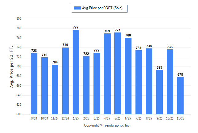 November 2025 Average Sold Price per Square Footage was Depreciating**