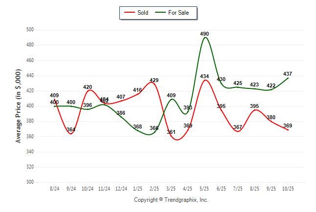 October 2025 Average For Sale Price was Neutral and Average Sold Price was Depreciating**