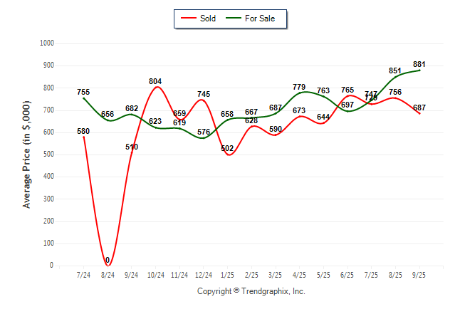 September 2025 Average For Sale Price was Appreciating and Average Sold Price was Neutral**
