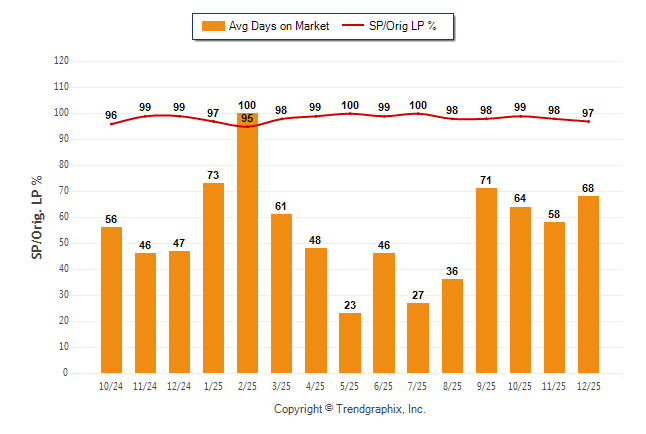 December 2025 Average Days on Market trend was Rising and Sold/Original List Price Ratio was Falling**