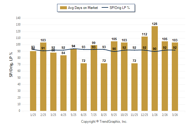 March 2026 Average Days on Market trend Remains Steady and Sold/Original List Price Ratio Remains Steady**