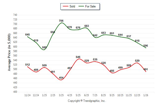 January 2026 Average For Sale Price was Depreciating and Average Sold Price was Neutral**