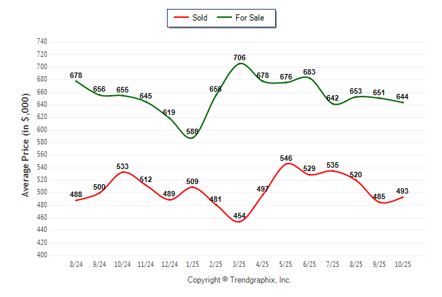 October 2025 Average For Sale Price was Depreciating and Average Sold Price was Neutral**