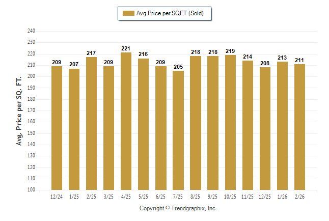 February 2026 Average Sold Price per Square Footage was Neutral**