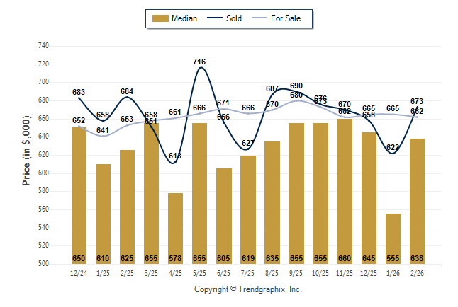 February 2026 Median Price was Neutral, Avg. For Sale Price was Depreciating, and Avg. Sold Price was Neutral**