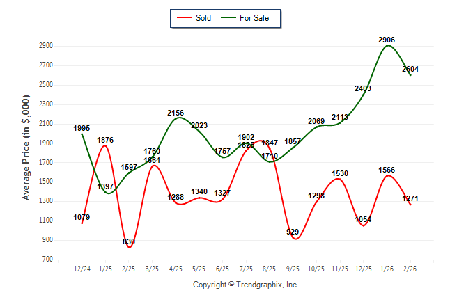 February 2026 Average For Sale Price was Neutral and Average Sold Price was Neutral**